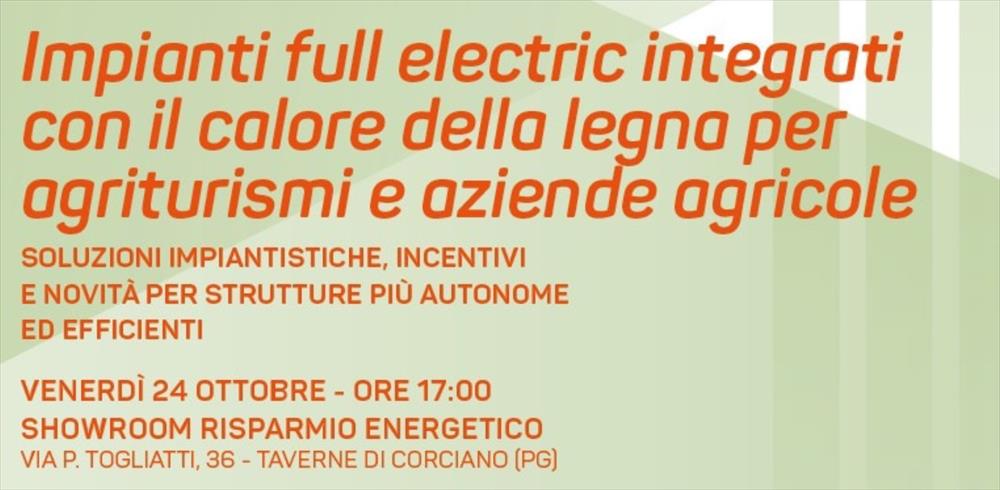 Si allega il programma della Tavola rotonda "Impianti full electric integrati con il calore della legna per agriturismi e aziende agricole" che si terrà presso lo Showroom Risparmio Energetico, Via P. Togliatti 36, Taverne di Corciano (PG).