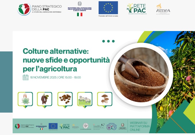 18 novembre 2025 - Webinar “Le colture alternative: nuove opportunità per l’agricoltura italiana” - Ismea