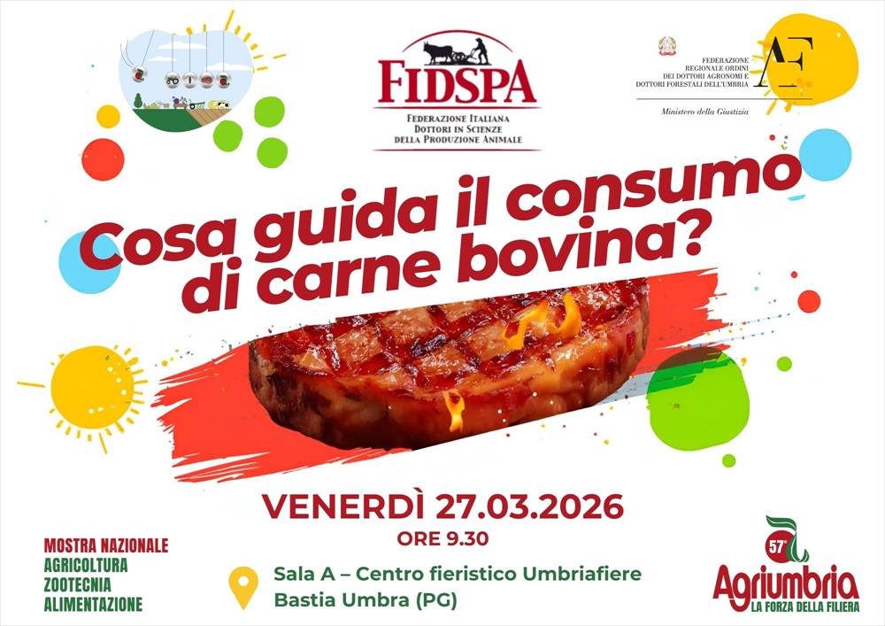 Si allega il programma dell´evento "Cosa guida il consumo di carne bovina?" organizzato da FIDSPA Umbria per il giorno Sabato 27 marzo 2026, alle ore 09:30, presso la sala A del Centro fieristico Umbriafiere nell´ambito della manifestazione Agriumbria 2026.