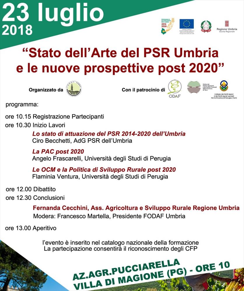 23 LUGLIO 2018 – MAGIONE – SEMINARIO “STATO DELL’ARTE DEL PSR UMBRIA E NUOVE PROSPETTIVE POST 2020”