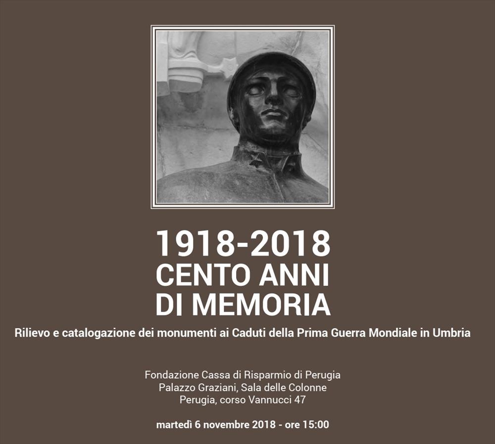 1918-2018 CENTO ANNI DI MEMORIA Rilievo e catalogazione dei monumenti ai Caduti della Prima Guerra Mondiale in Umbria