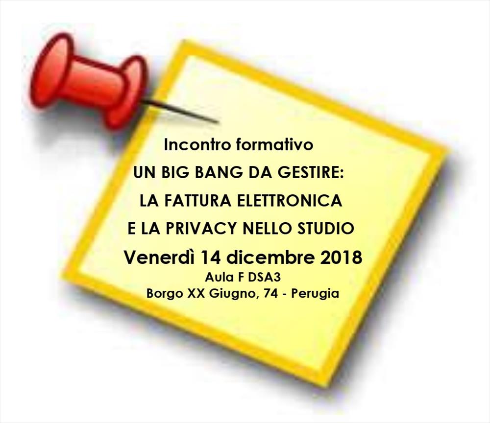 Home / News / 14/12/2018 - Incontro formativo "La fattura elettronica e la privacy nello studio" - Perugia