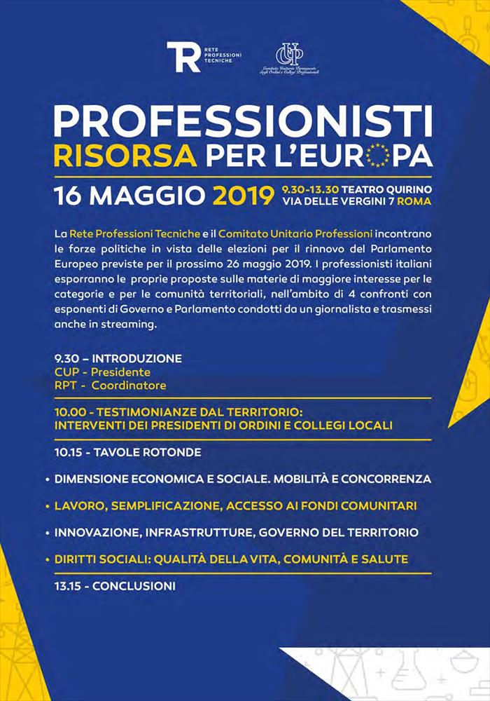 Home / News / 16 maggio 2019 - Teatro Quirino di Roma - Evento RPT-CUP: Italia, Europa, Professioni.