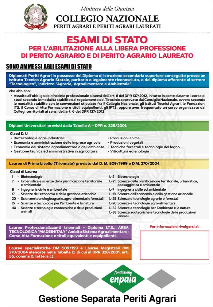 Home / News / Esami di Stato per lŽabilitazione allŽesercizio della libera professione di Perito Agrario sessione unica 2019 - SCADENZA DOMANDE 06/06/2019