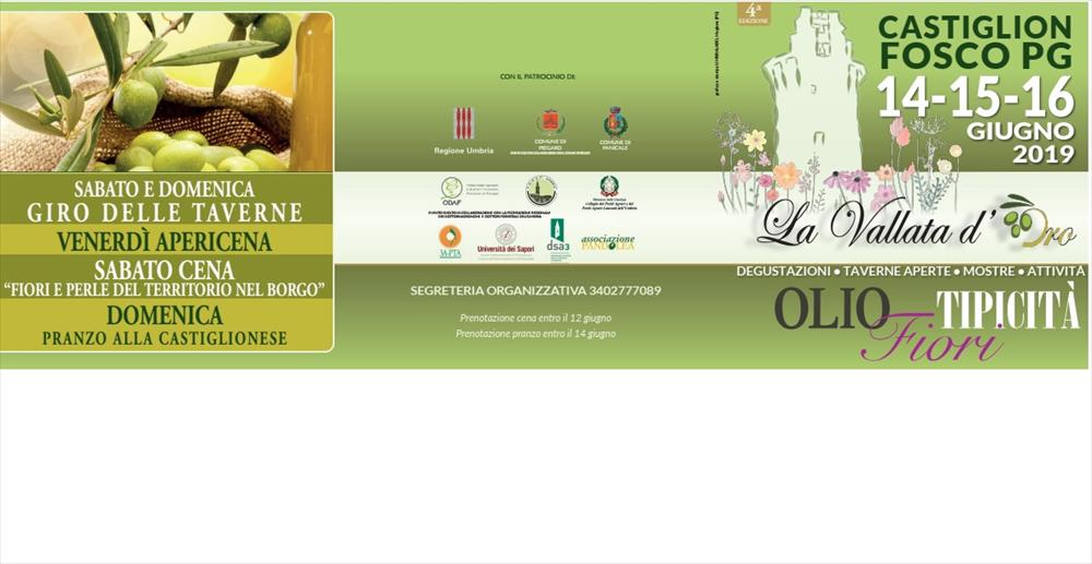 Nell´ambito della manifestazione La Vallata d´Oro che si terrà dal 14 al 16 giugno 2019 a Castiglion Fosco di Piegaro, si svolgerà il convegno "Il valore dell´olio: dalla produzione all´acquisto".