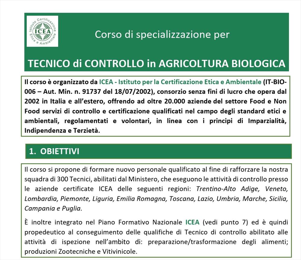ICEA - Corso per TECNICO di CONTROLLO in AGRICOLTURA BIOLOGICA – Settembre 2019