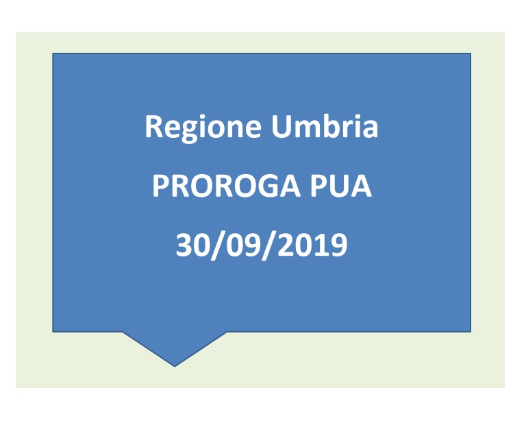 Come da comunicazione pervenuta dalla Regione Umbria, si informa che la D.G.R. n. 926 del 30.07.19 in corso di perfezionamento, ha stabilito per la sola stagione agraria 2018/2019, la concessione di una proroga fino al 30 settembre 2019 del termine di compilazione del PUA di cui all’articolo 12, comma 4 della D.G.R. n. 501/2019. Restano invariate le tempistiche per l’aggiornamento del PUA ed il termine del 10 novembre 2019 di chiusura automatica dei PUA da parte del sistema informatico GIAS.