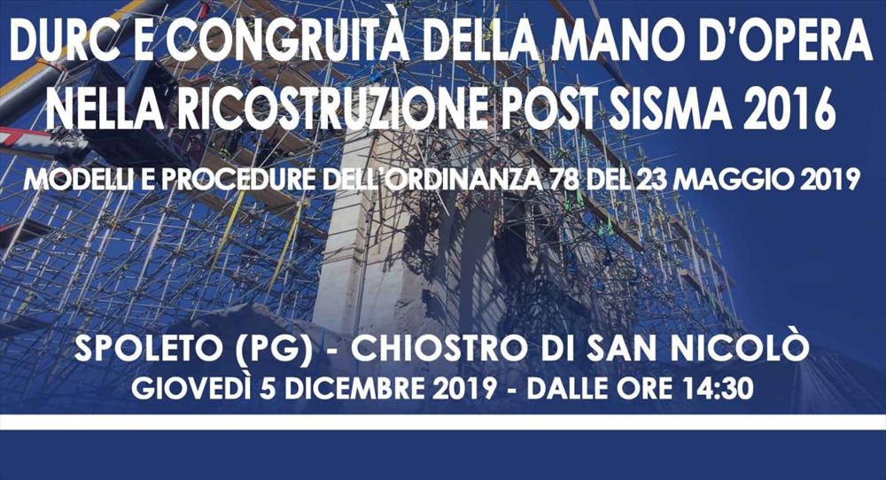 Home / News / 05/12/2019 - DURC e congruità della manodopera nella ricostruzione post sisma 2016 - Spoleto