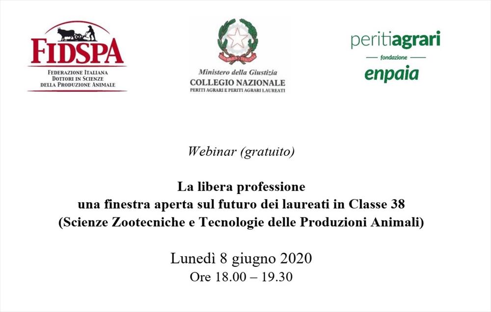 Lunedì 8 Giugno 2020, dalle 16:00 alle 19:30 circa, si terrà un Webinar dal titolo "La libera professione, una finestra aperta sul futuro dei laureati in Classe 38" (Scienze Zootecniche e Tecnologie delle Produzioni Animali).