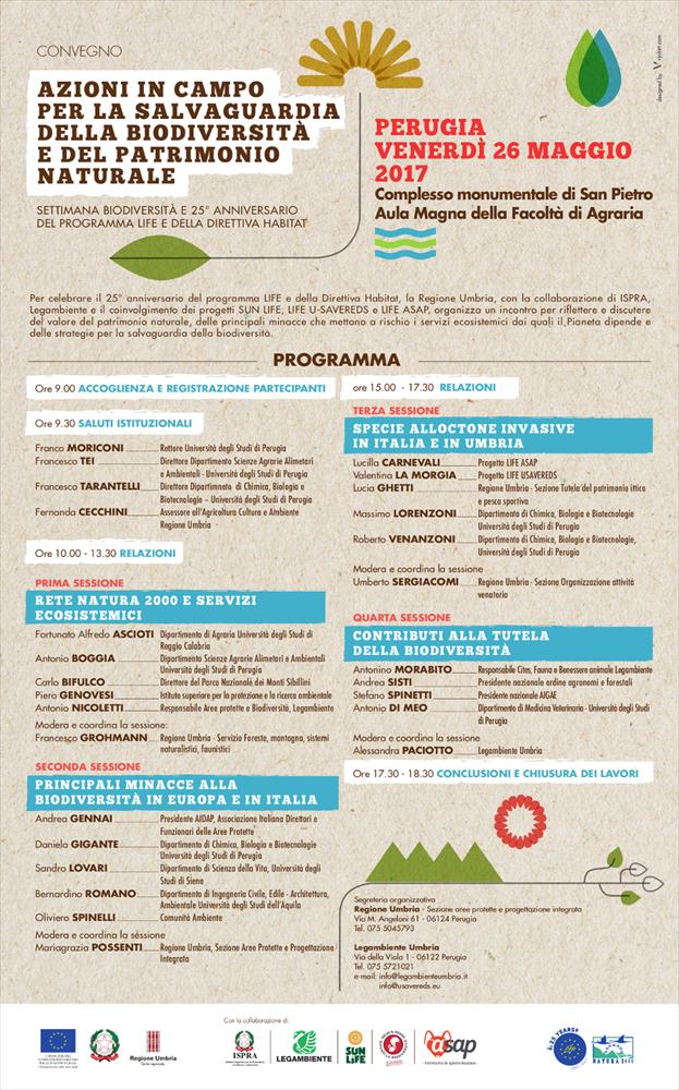 In allegato il programma del convegno “Azioni in campo per la salvaguardia della biodiversità e del patrimonio naturale” che si svolgerà venerdì 26 maggio presso l’Aula Magna della Facoltà di Agraria dell’Università di Perugia.