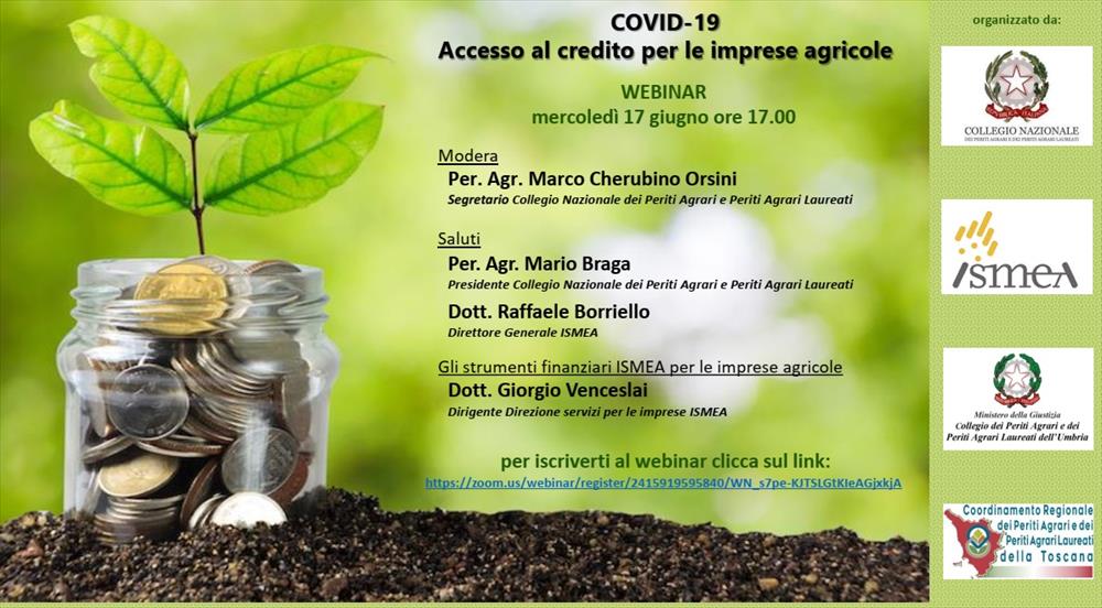 17/06/2020 Ore 17 - Webinar ISMEA "COVID-19 ACCESSO AL CREDITO PER LE IMPRESE AGRICOLE"