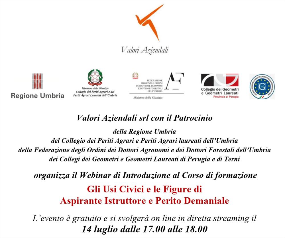 14 luglio 2020 - Webinar di introduzione al corso di formazione "Gli Usi Civici e Aspiranti Istruttori e Periti Demaniali"