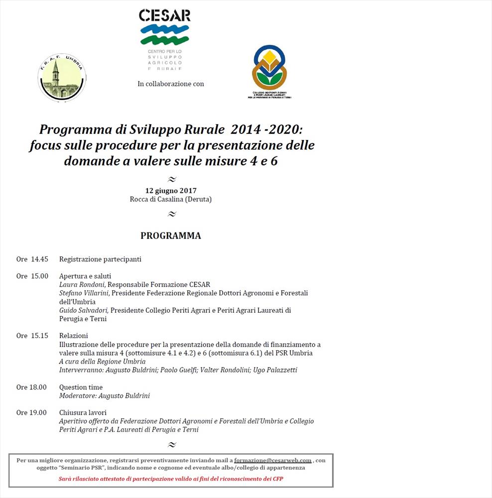 12/06/2017 – INCONTRO PROCEDURE PSR UMBRIA - MISURE 4 E 6