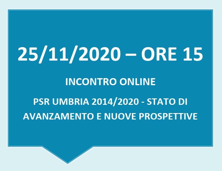 Home / News / 25 novembre 2020 - PSR Umbria 2014/2020 - Stato di avanzamento e nuove prospettive