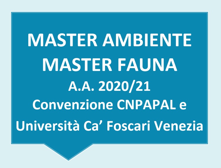Home / News / Master Ambiente e Master Fauna a.a.2020/21 - Convenzione CNPAPAL e Università Ca´ Foscari Venezia - SCADENZA ISCRIZIONI 18 GENNAIO 2021