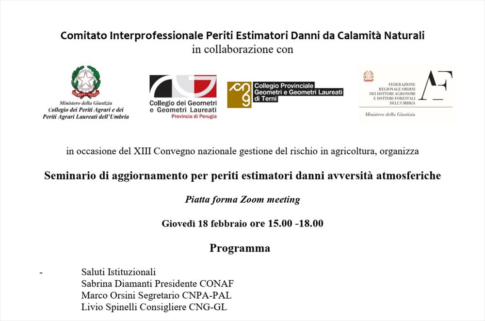 Home / News / 18/02/2021 ore 15 - Seminario di aggiornamento per periti estimatori danni avversità atmosferiche