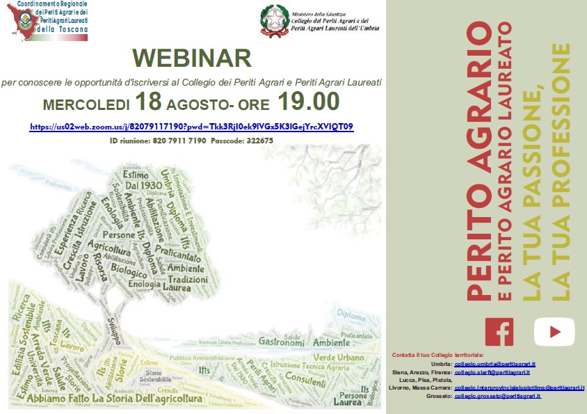 18/08/2021 ORE 19 - WEBINAR RIVOLTO AI CANDIDATI ALL´ESAME DI STATO per conoscere le opportunità d´iscriversi al Collegio dei Periti Agrari e Periti Agrari Laureati