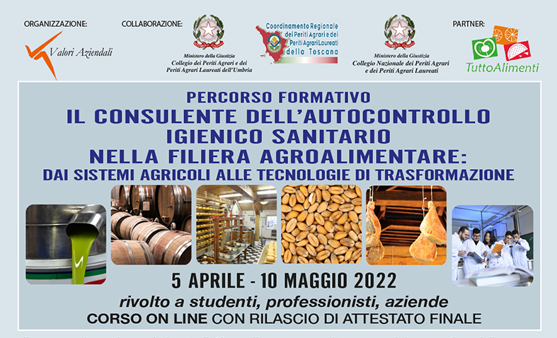Aprile/Maggio 2022 - Percorso formativo IL CONSULENTE DELL’AUTOCONTROLLO IGIENICO SANITARIO NELLA FILIERA AGROALIMENTARE