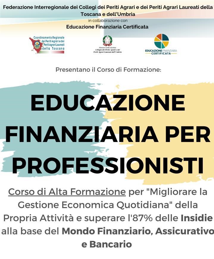 Pubblichiamo quanto ricevuto dalla Federazione Interregionale dei Periti Agrari e P.A.L. di Toscana-Umbria relativamente all´organizzazione del corso formativo "Educazione finanziaria per professionisti" che si terrà nel mese di Novembre.