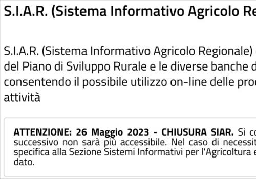 Come ricevuto dal Servizio Regionale si comunica che a partire dal 26/05/2023 la piattaforma SIAR verrà dismessa e dal giorno successivo non sarà più ...