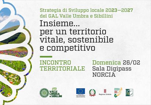 Si allega il programma dell´ultimo evento di divulgazione di Strategia di Sviluppo Locale 2023/2027 del Gal Valle Umbra e Sibillini che si terrà a Nor...