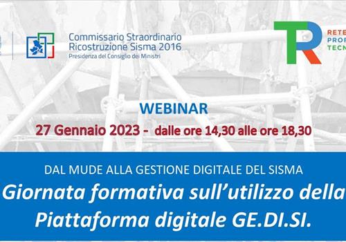 Si allega locandina e nota informativa del corso per l´utilizzo della nuova piattaforma sisma 2016 (GEDISI). L´evento è patrocinato dalla RPT naziona...
