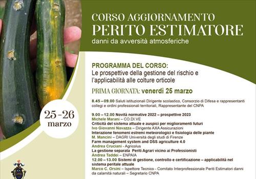 E´ organizzato per il 25 e 26 marzo p.v. il corso di aggiornamento "Perito estimatore danni da avversità atmosferiche" sulle colture orticole. Il cor...