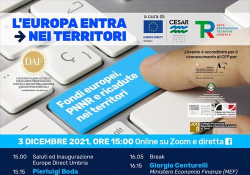 Il prossimo 3 dicembre, alle ore 15.00, si parlerà di "Fondi europei, PNNR e ricadute nel territorio". Si tratta di un evento ON LINE (su ZOOM), con i...