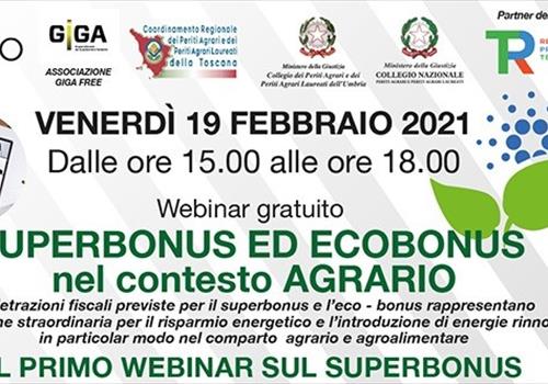 VENERDÌ 19 FEBBRAIO 2021, dalle ore 15.00 alle ore 18.00, si terrà il Webinar gratuito "SUPERBONUS ED ECOBONUS nel contesto AGRARIO". Le detrazioni f...