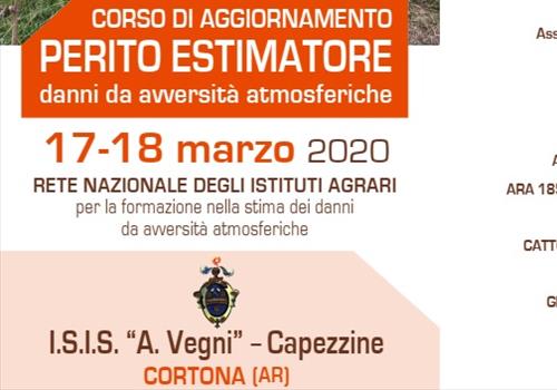 Il 17 e 18 marzo 2020 si terrà il corso di aggiornamento "Perito estimatore danni da avversità atmosferiche" presso l´Istituto Vegni-Capezzine di Cort...