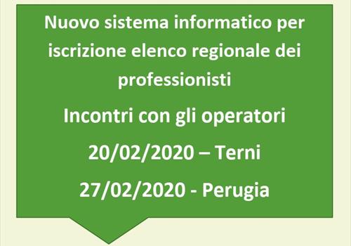 Al fine di presentare il nuovo sistema informatico per l´iscrizione nell´elenco regionale dei professionisti, si comunica che la Regione Umbria ha org...