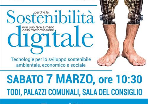 Si allega locandina della conferenza sulla Sostenibilità Digitale che si terrà il 7 marzo p.v. a Todi. Per la partecipazione all´evento sono riconosc...