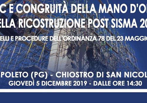 Giovedì 5 dicembre 2019, dalle ore 14:30 alle ore 18, presso il Chiostro di San Nicolò a Spoleto, si terrà il seminario “DURC e congruità della manodo...