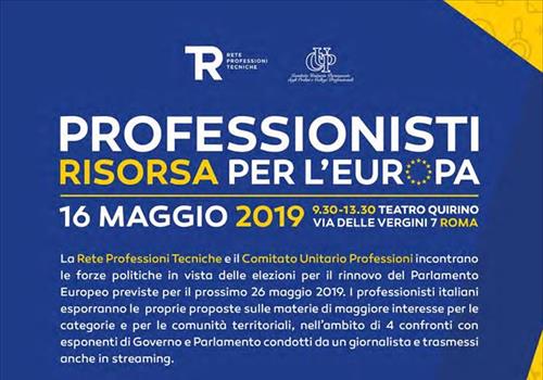 La Rete Professioni Tecniche (RPT) e il Comitato Unitario delle Professioni (CUP) organizza un evento pubblico che si terrà il 16 maggio, presso il t...