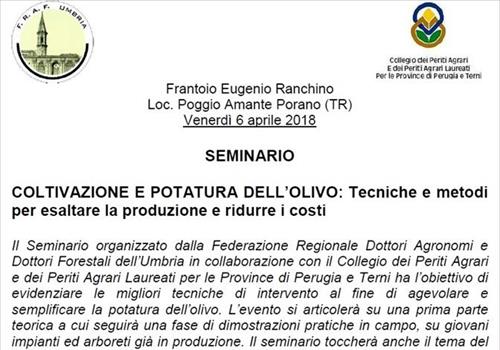 Il 6 aprile 2018, presso il Frantoio Ranchino a Porano (TR), si svolgerà il seminario "Coltivazione e potatura dell´olivo" organizzato dalla Federazio...