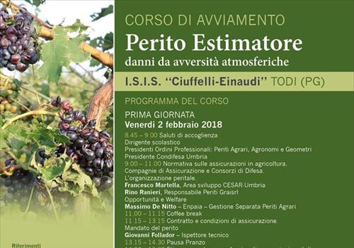 Il 2/3 febbraio 2018, presso l´I.S.I.S. "Ciuffelli-Einaudi" di Todi (PG), si svolgerà il corso di avviamento "Perito estimatore danni da avversità atm...