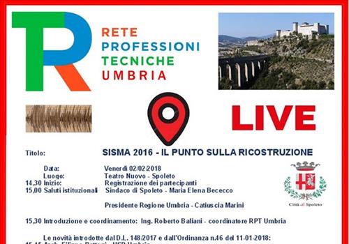 La Rete delle Professioni Tecniche dell´Umbria ha organizzato un incontro informativo dal titolo "Sisma 2016 - Il punto sulla ricostruzione" che si te...