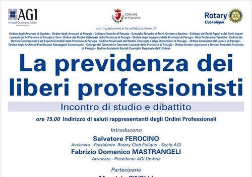 Il Rotary Club di Foligno e la Sezione Umbria di AGI (Avvocati Giuslavoristi Italiani) hanno organizzato il convegno “La previdenza dei liberi profes...