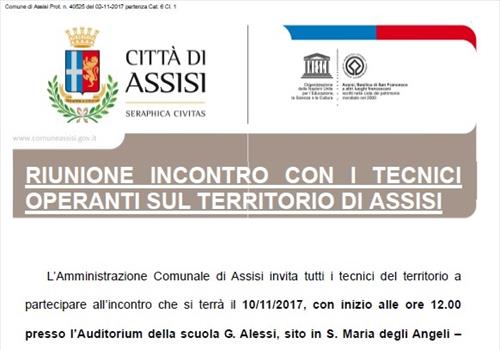 Si informa che l’Amministrazione Comunale di Assisi ha organizzato un incontro con i tecnici operanti nel territorio comunale in data 10/11/2017, alle...